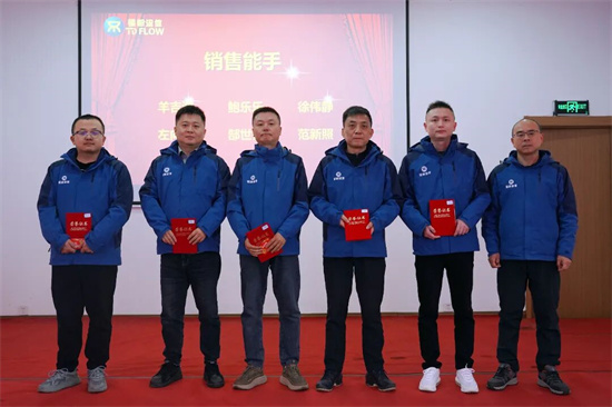 營(yíng)銷中心總經(jīng)理韓承志為銷售能手頒獎(jiǎng)(羊吉鴻、鮑樂(lè)樂(lè)、徐偉靜、左向飛、郜世鈺、范新照)